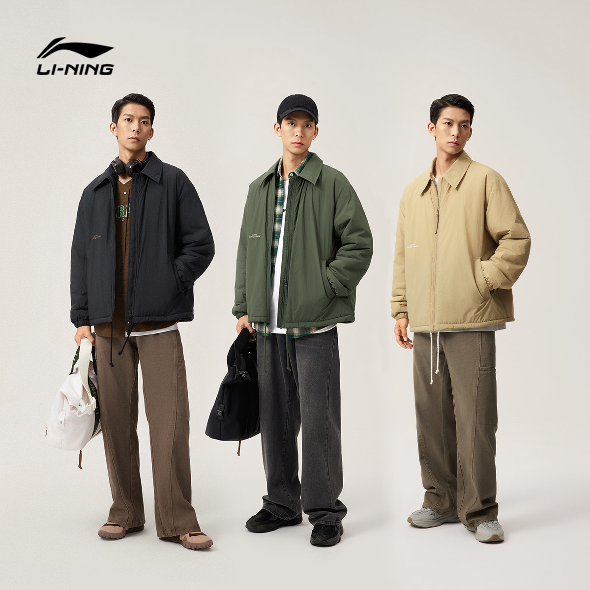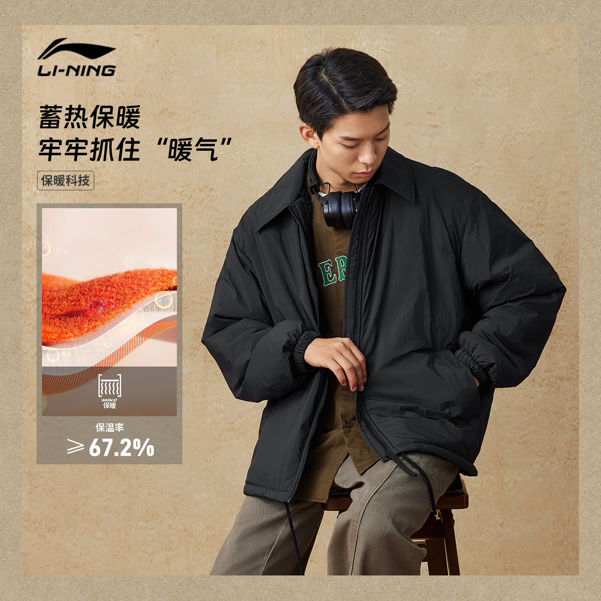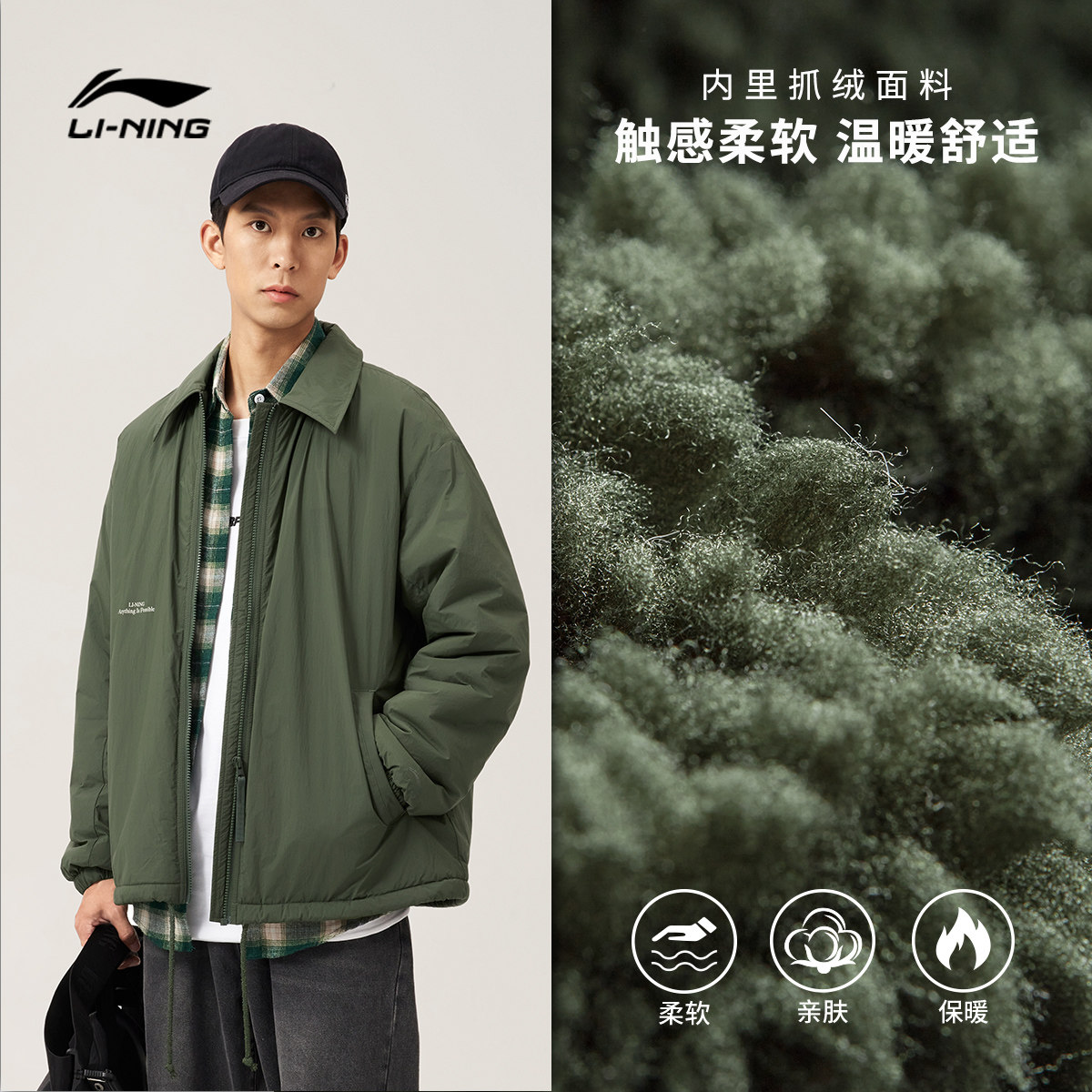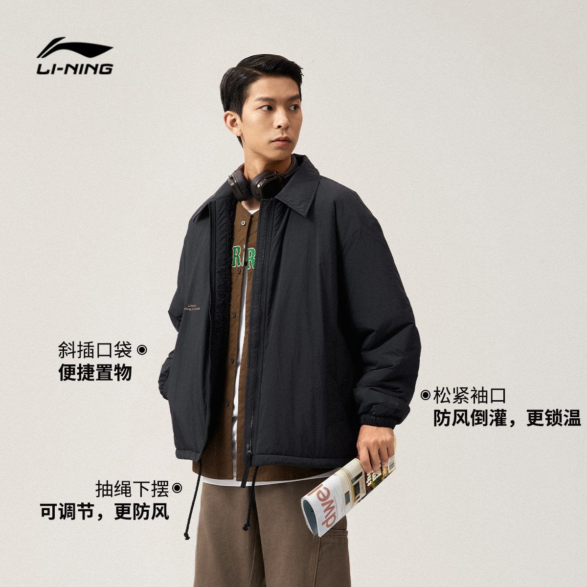 李宁外套男加厚保暖秋冬防泼水宽松防风休闲复古风衣翻领教练夹克