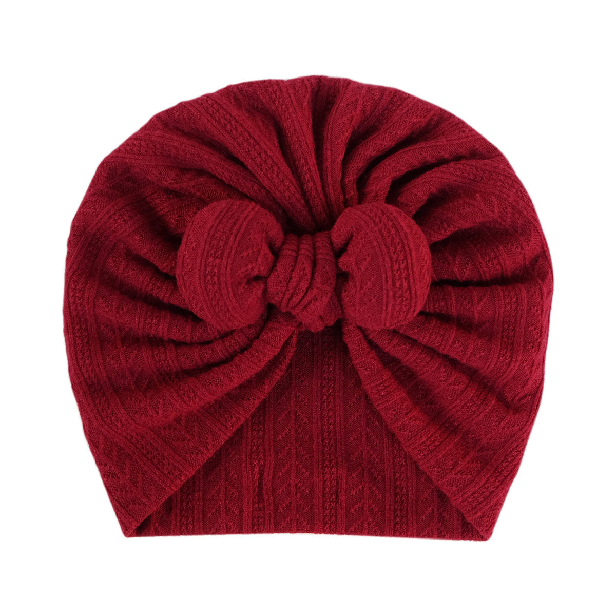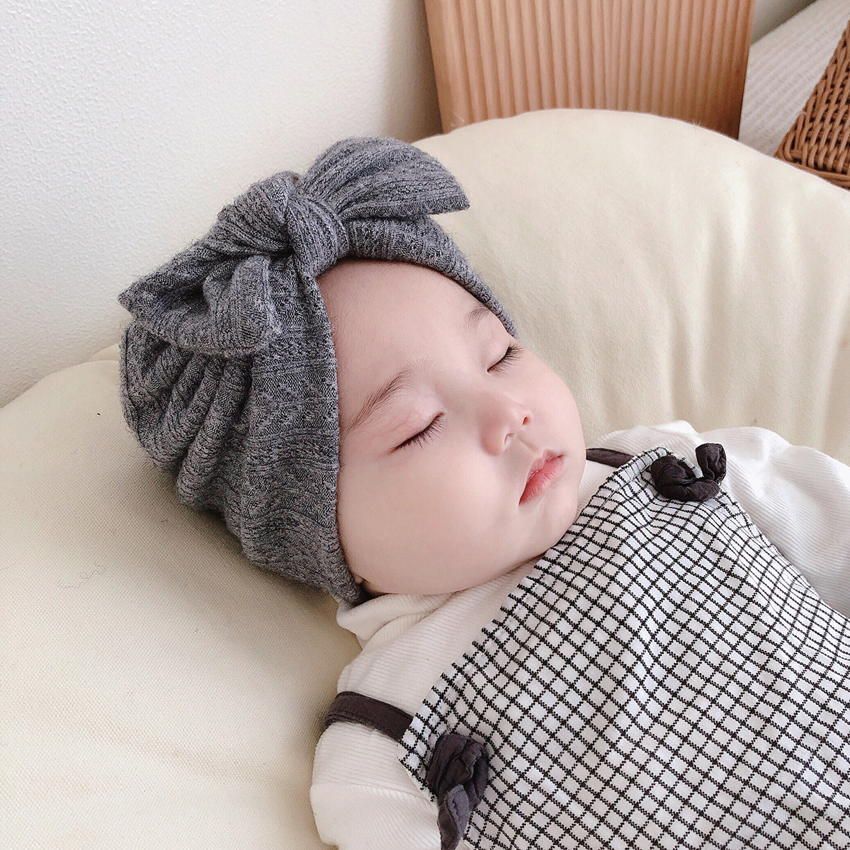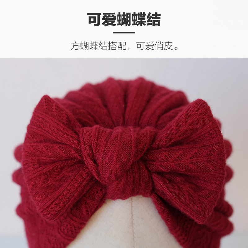 婴儿帽子蝴蝶结羊绒提花针织加厚保暖女宝宝新生儿护囟门胎帽秋冬