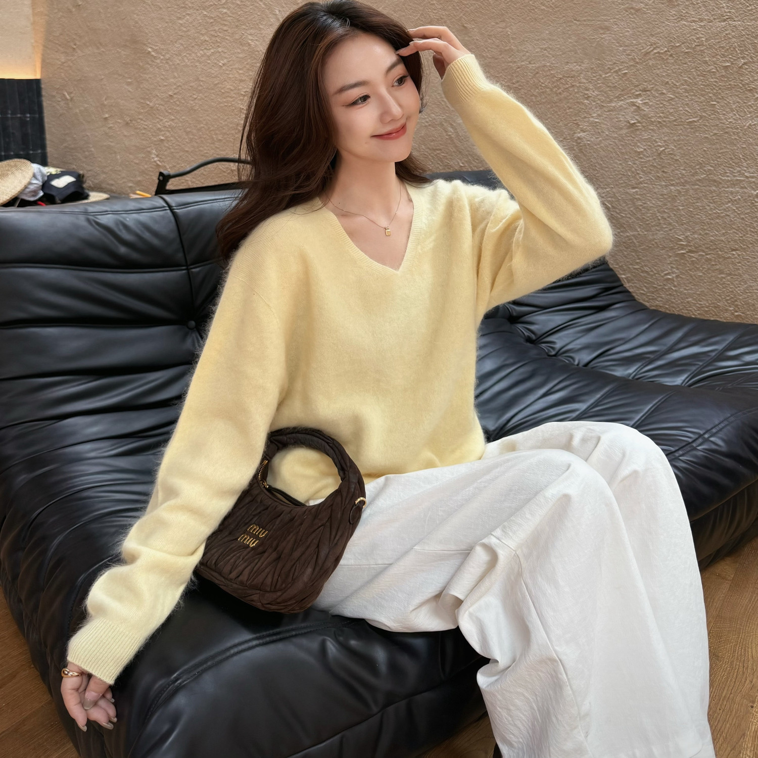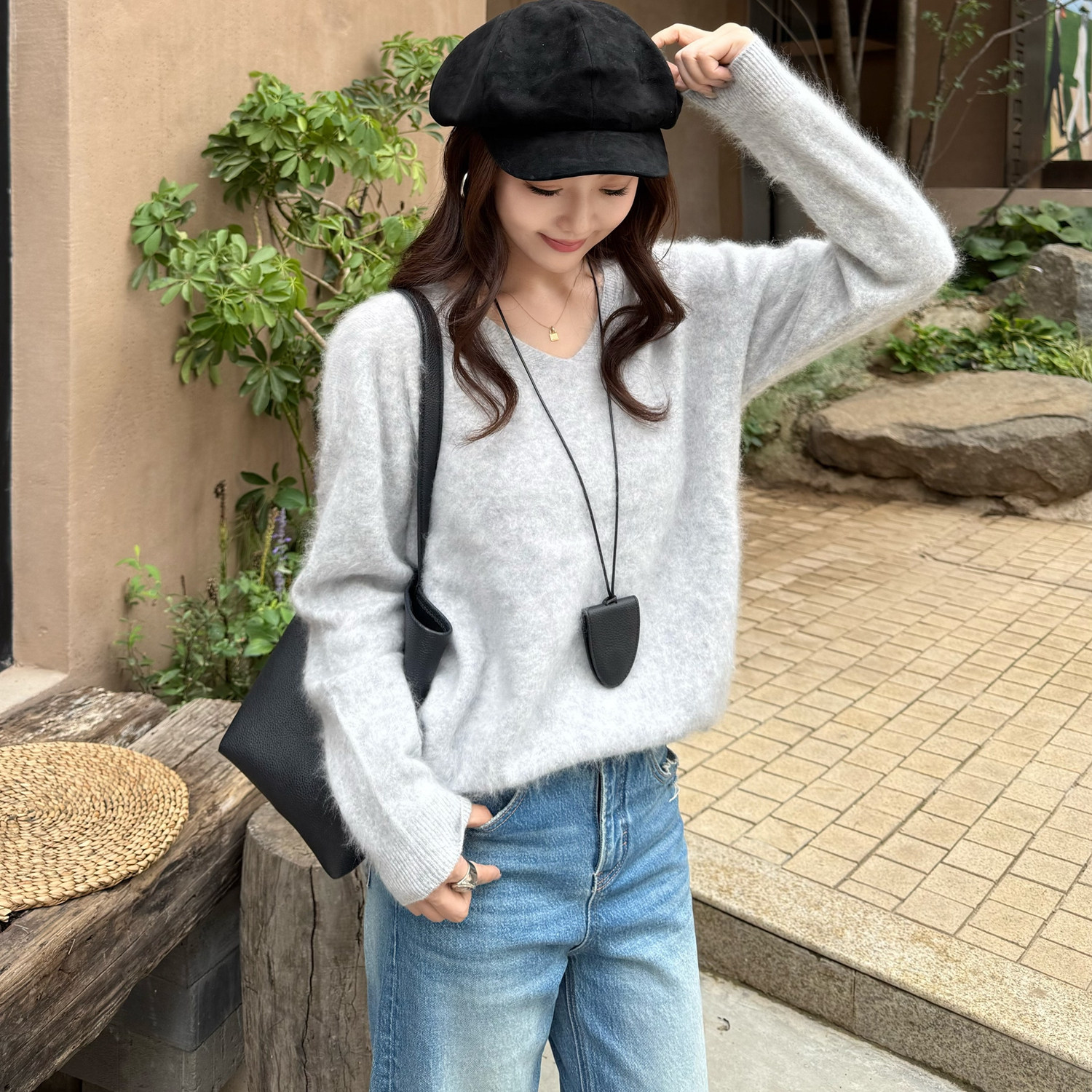 曹大曼 柔光镜显白毛衣羊毛山羊绒拉毛开衫显瘦V领毛衣圆领毛衣女