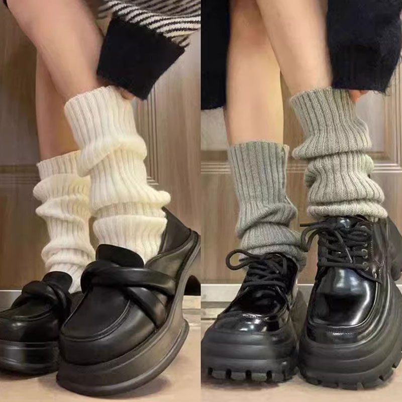 秋冬女款纯色针织保暖过膝堆堆袜套辣妹显瘦小腿袜套少女y2k高筒