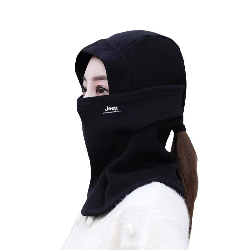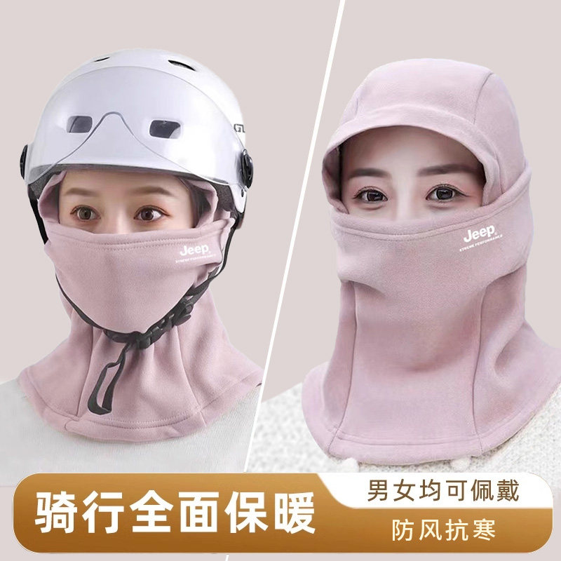 jeep吉普骑行套头帽子女士保暖冬季加绒防风面罩连体帽女头盔内胆
