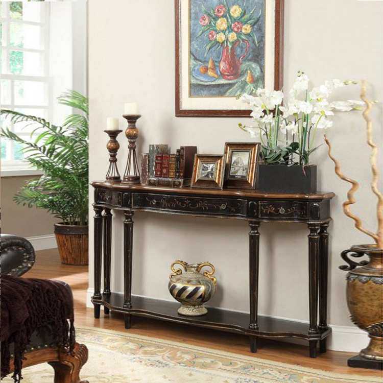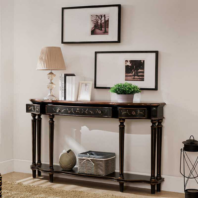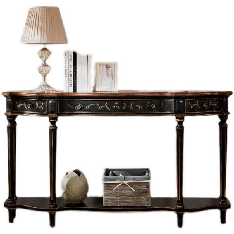 欧美式玄关台长条案台靠墙三斗走廊桌别墅沙发后背几复古手绘