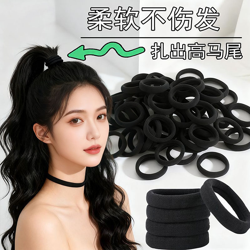 黑色柔软弹力发圈不伤发高弹力耐用皮筋无痕头绳扎头发束发带发绳