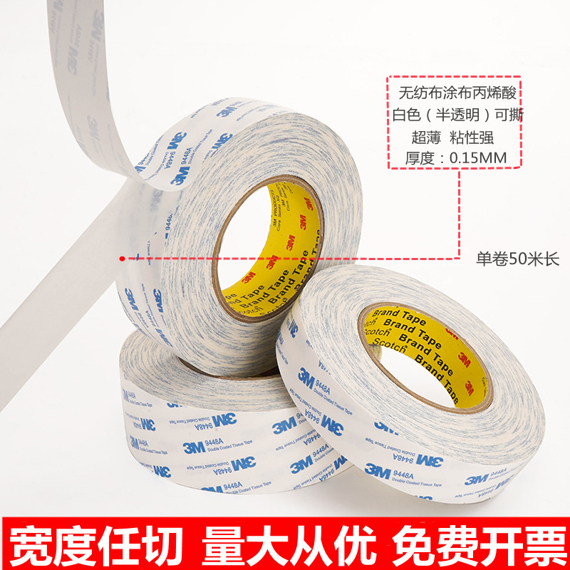 正品3M9448A双面胶 超薄高粘度固定强力无痕耐高温白色双面胶3M胶