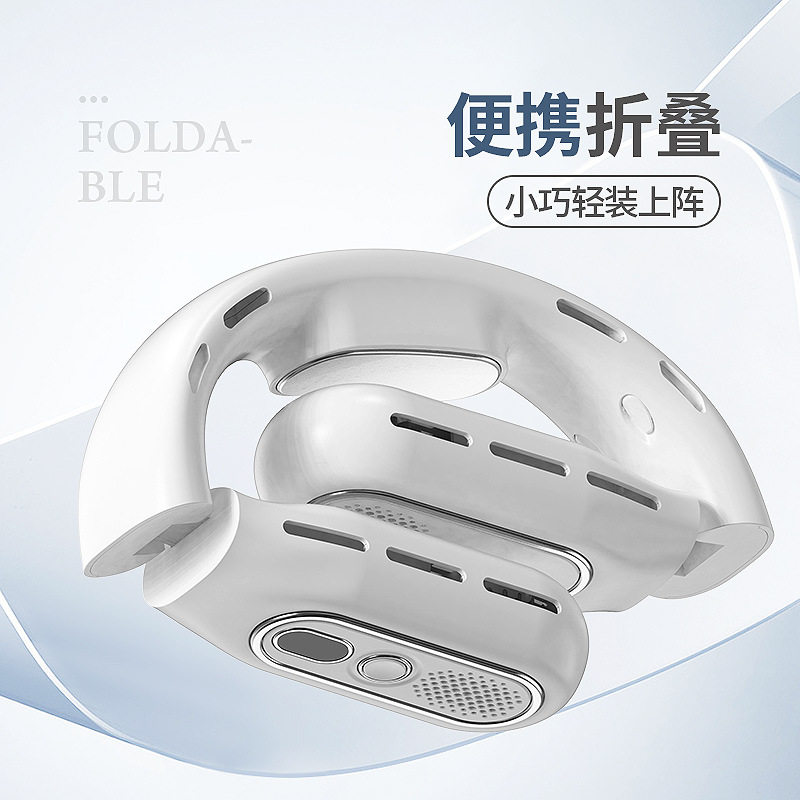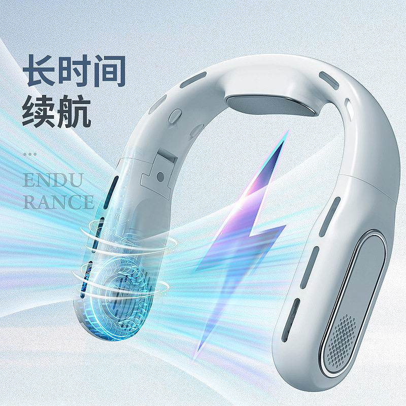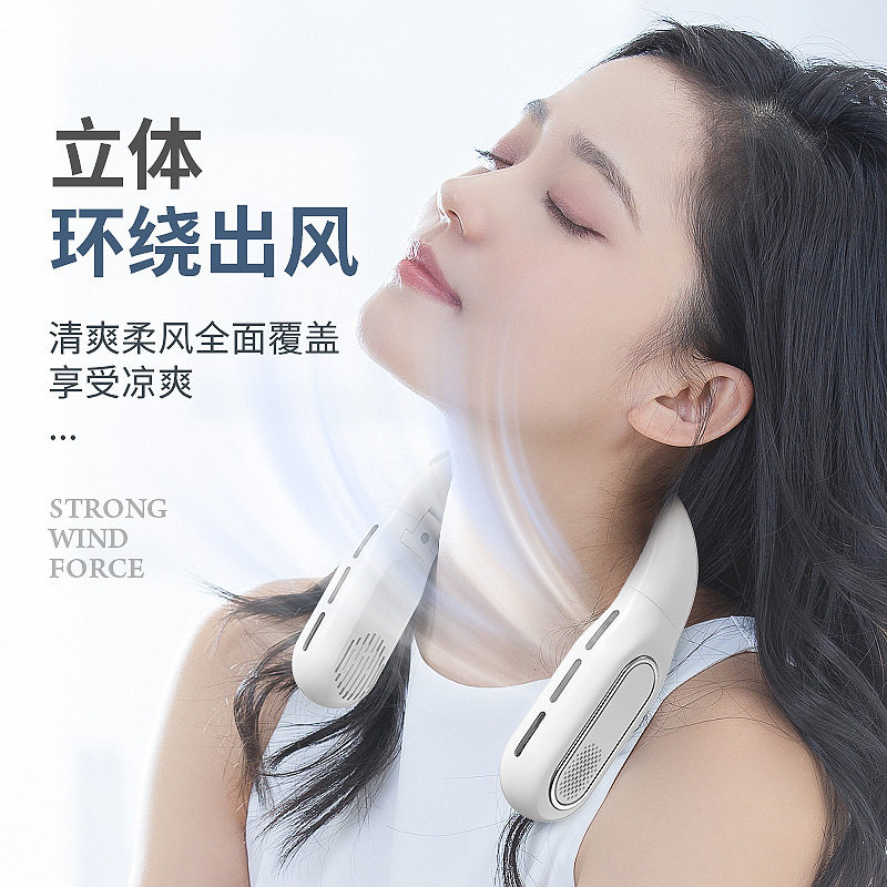 无叶挂脖风扇懒人静音大容量USB充电折叠便携数显户外挂颈小风扇