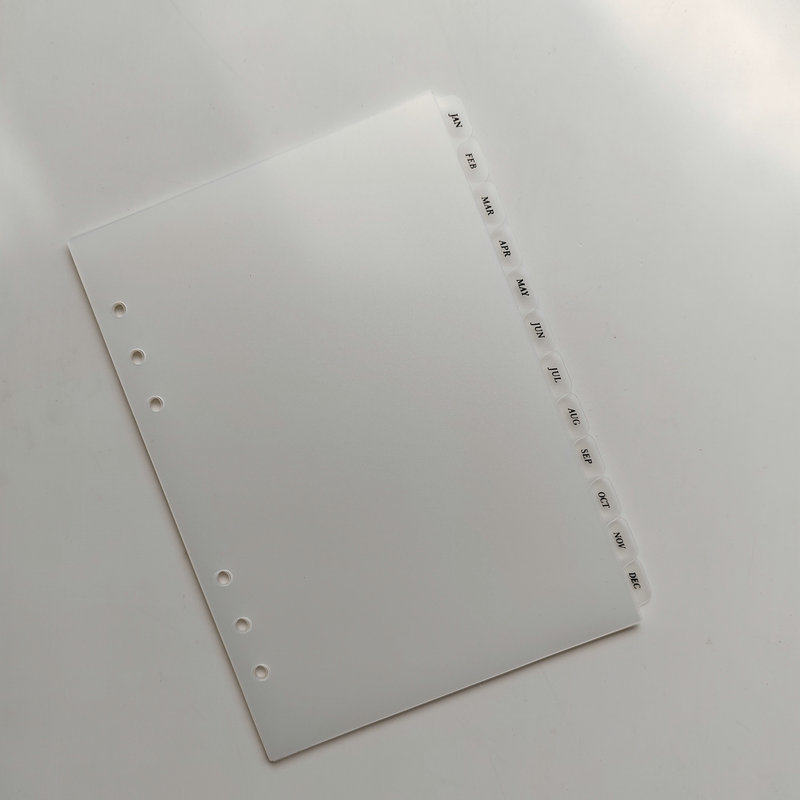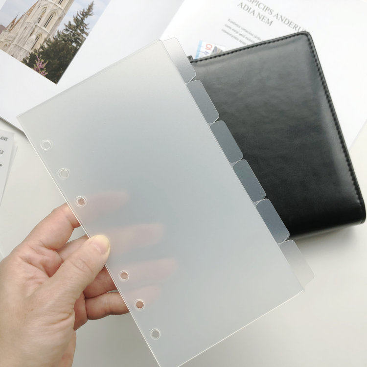 A5A6半透明磨砂6孔活页pp隔页板六分隔索引手帐垫板防水分类配件