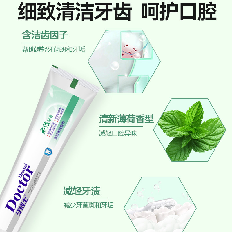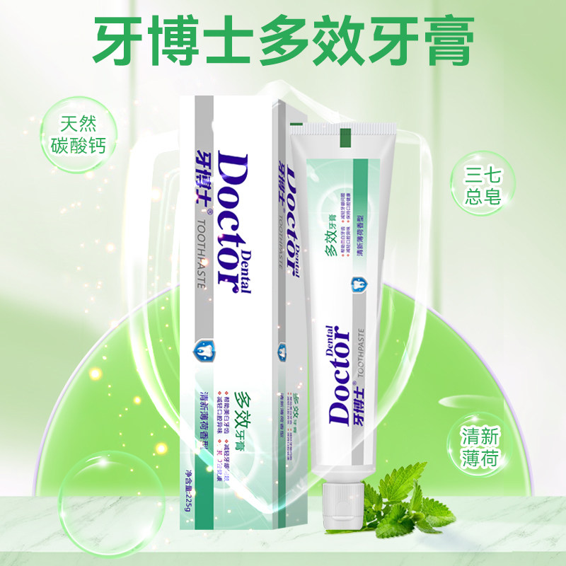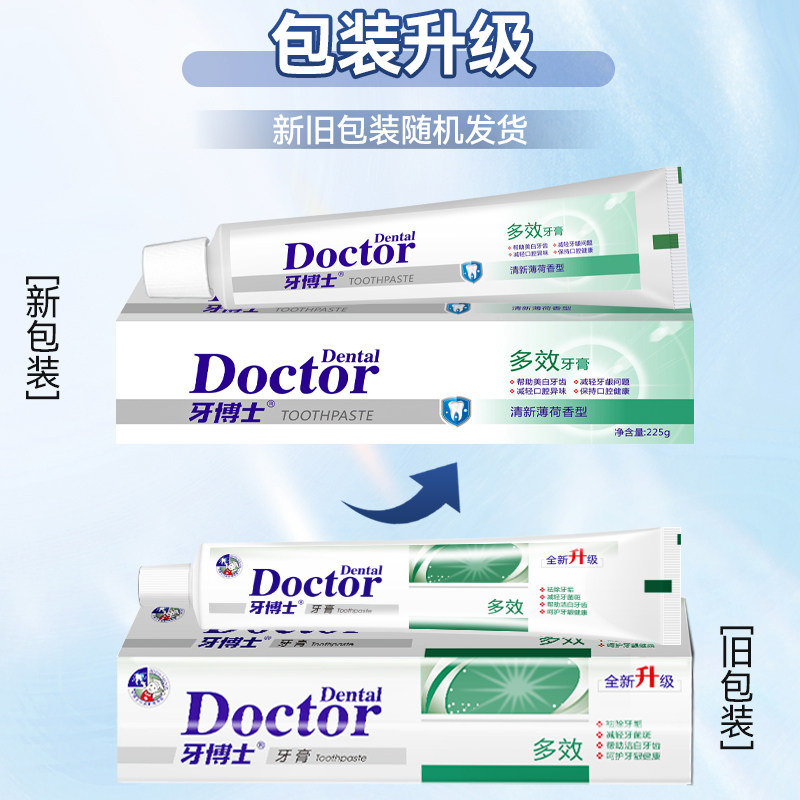 牙博士多效牙膏225g大容量清火洁齿去渍亮白清新口气不含氟牙膏