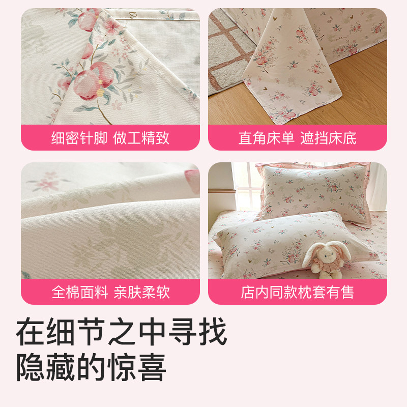 洁丽雅全棉水洗棉床单单件100纯棉被单枕套三件套学生宿舍单人