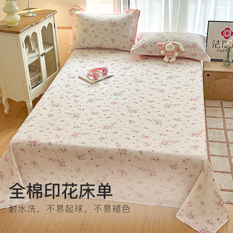 春季纯棉床单单件床上用品100%全棉布女宿舍被单子单双人2025新款