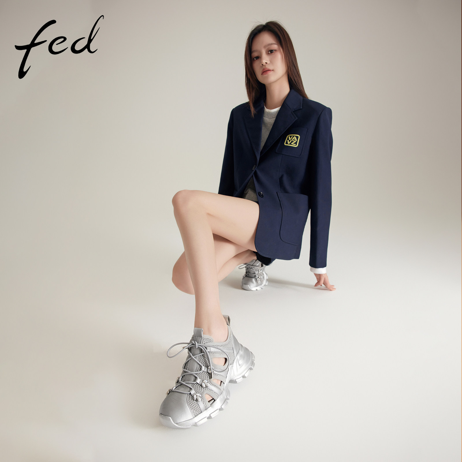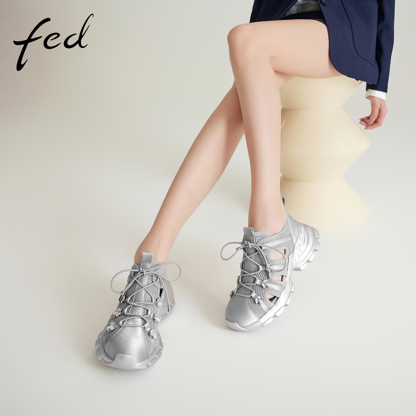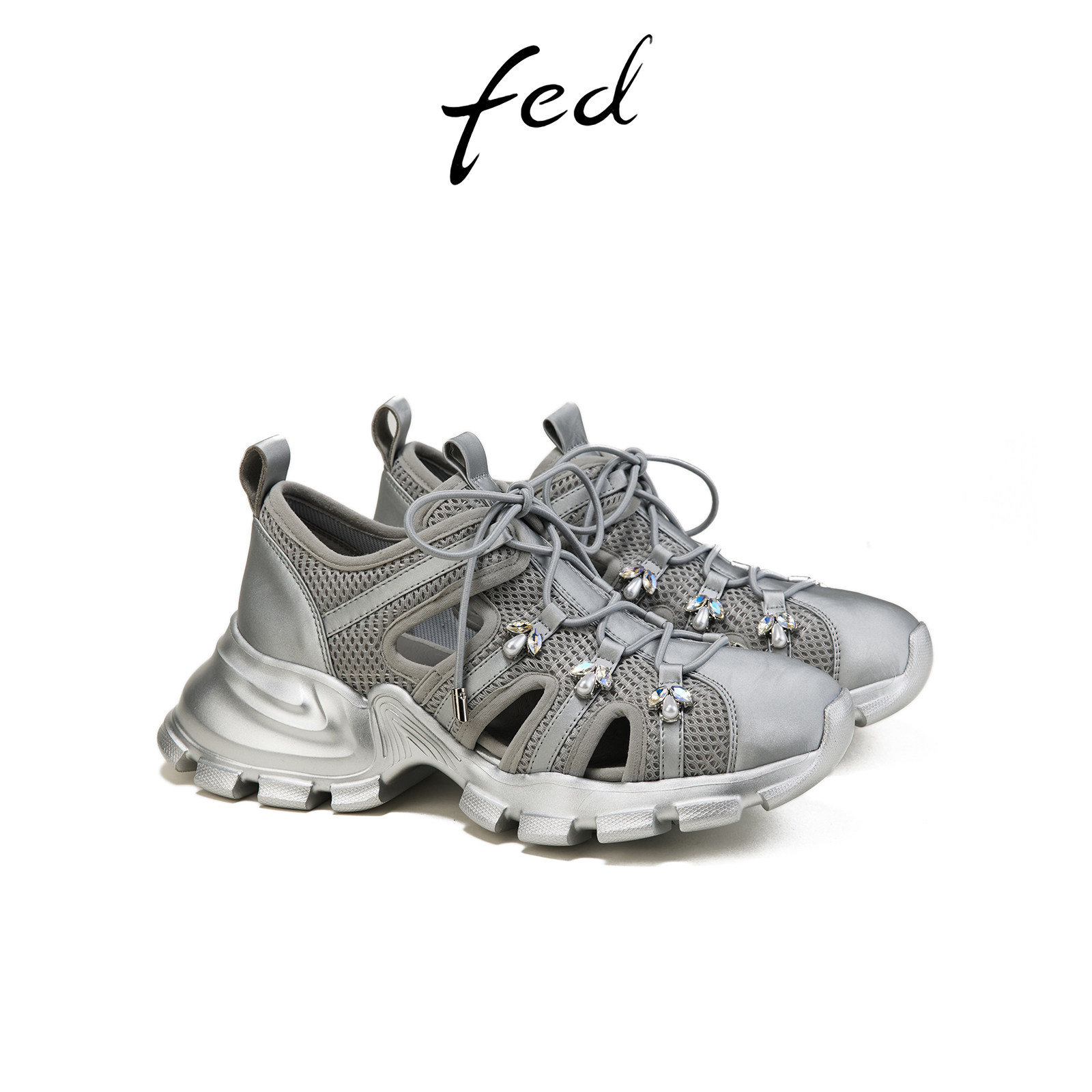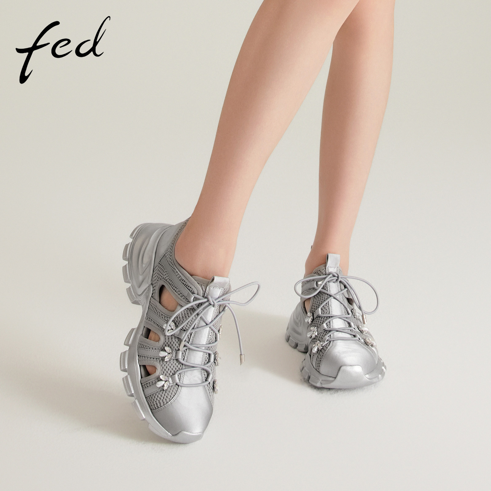 fed银色运动鞋春季新款女鞋镂空休闲鞋厚底溯溪鞋女S0208-YAB292