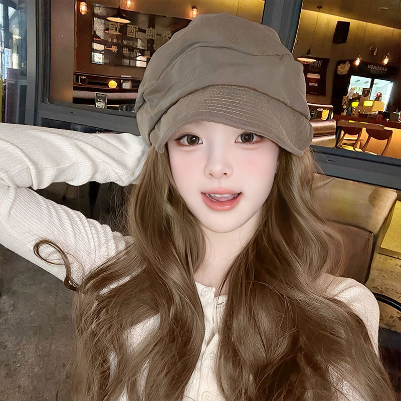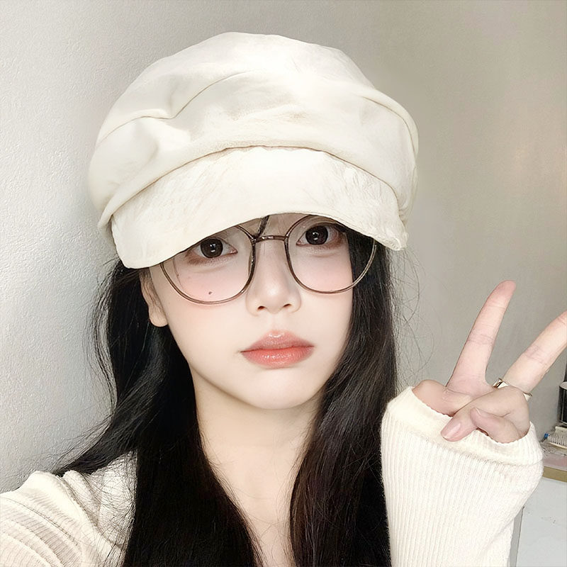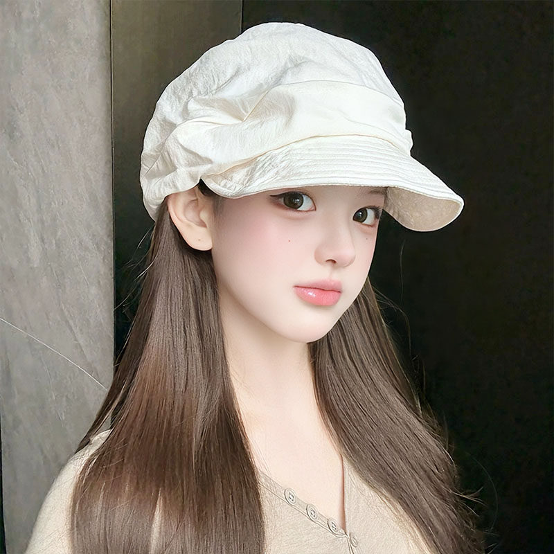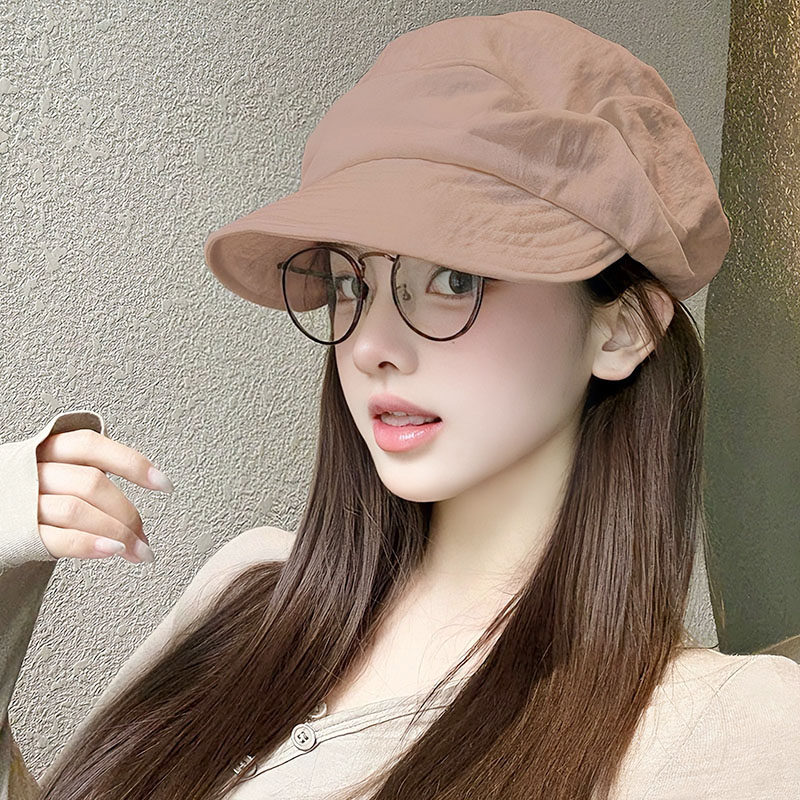 日系轻薄透气八角帽子女夏季复古褶皱显脸小贝雷帽出游遮阳报童帽