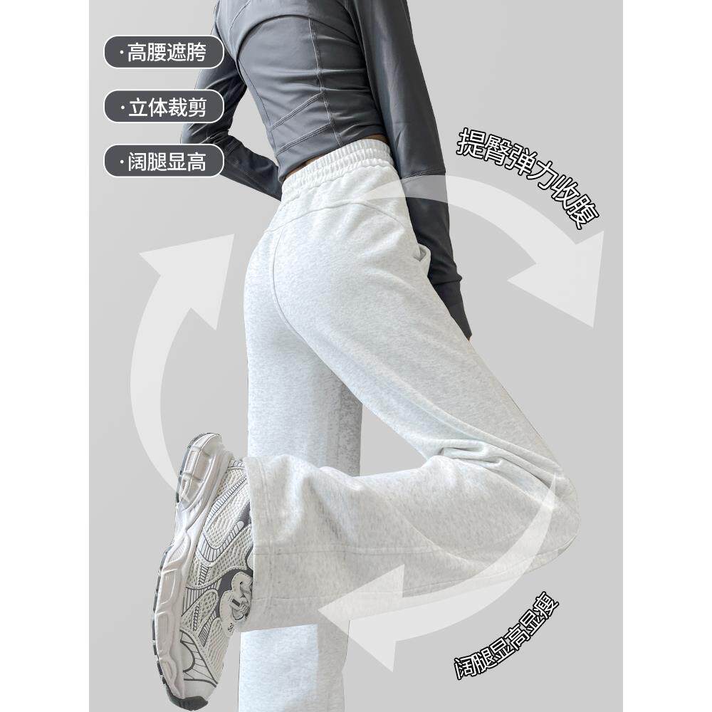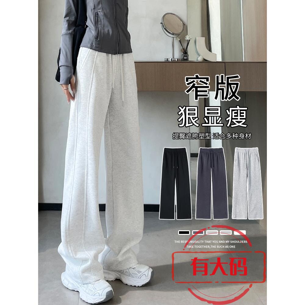 运动裤女春秋2025休闲小个子直筒卫裤秋冬加绒窄版大码阔腿裤加长