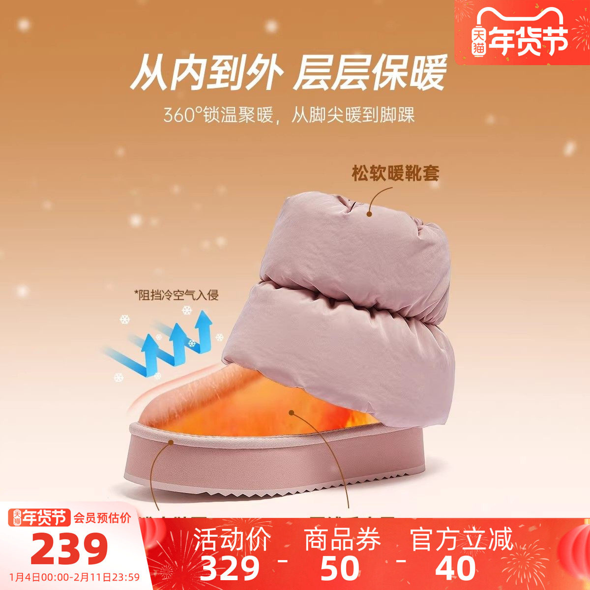人本厚底雪地靴女款2025新款冬季女鞋东北加绒加厚保暖增高棉鞋