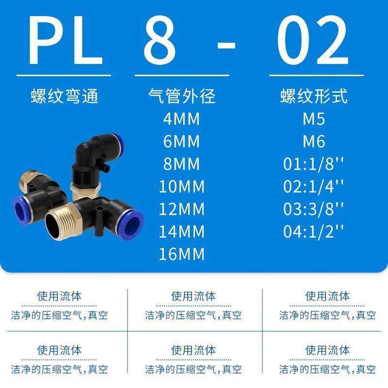 贝傅特弯通气管接头快速旋转接头PL型外螺纹快拧快插接头气动元件
