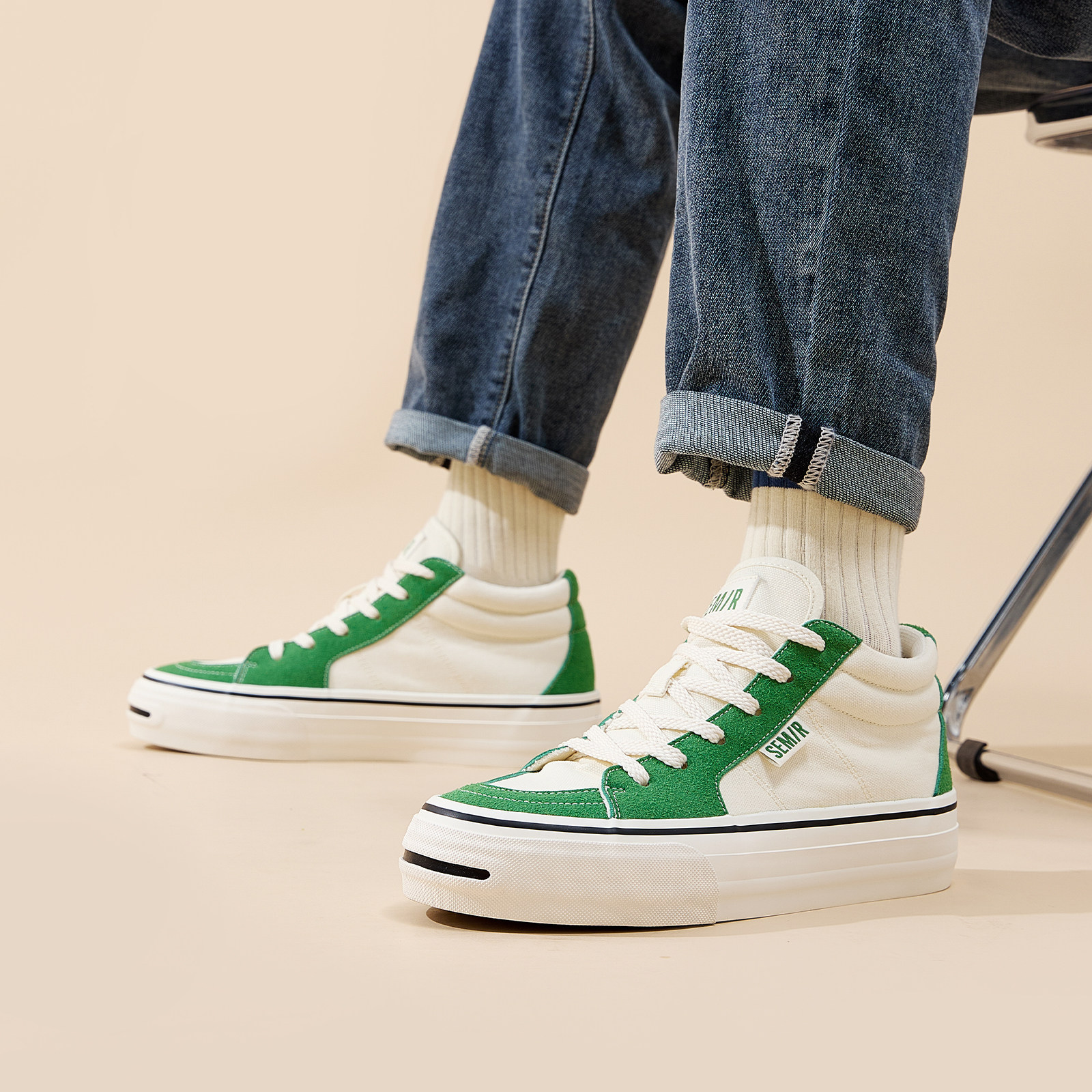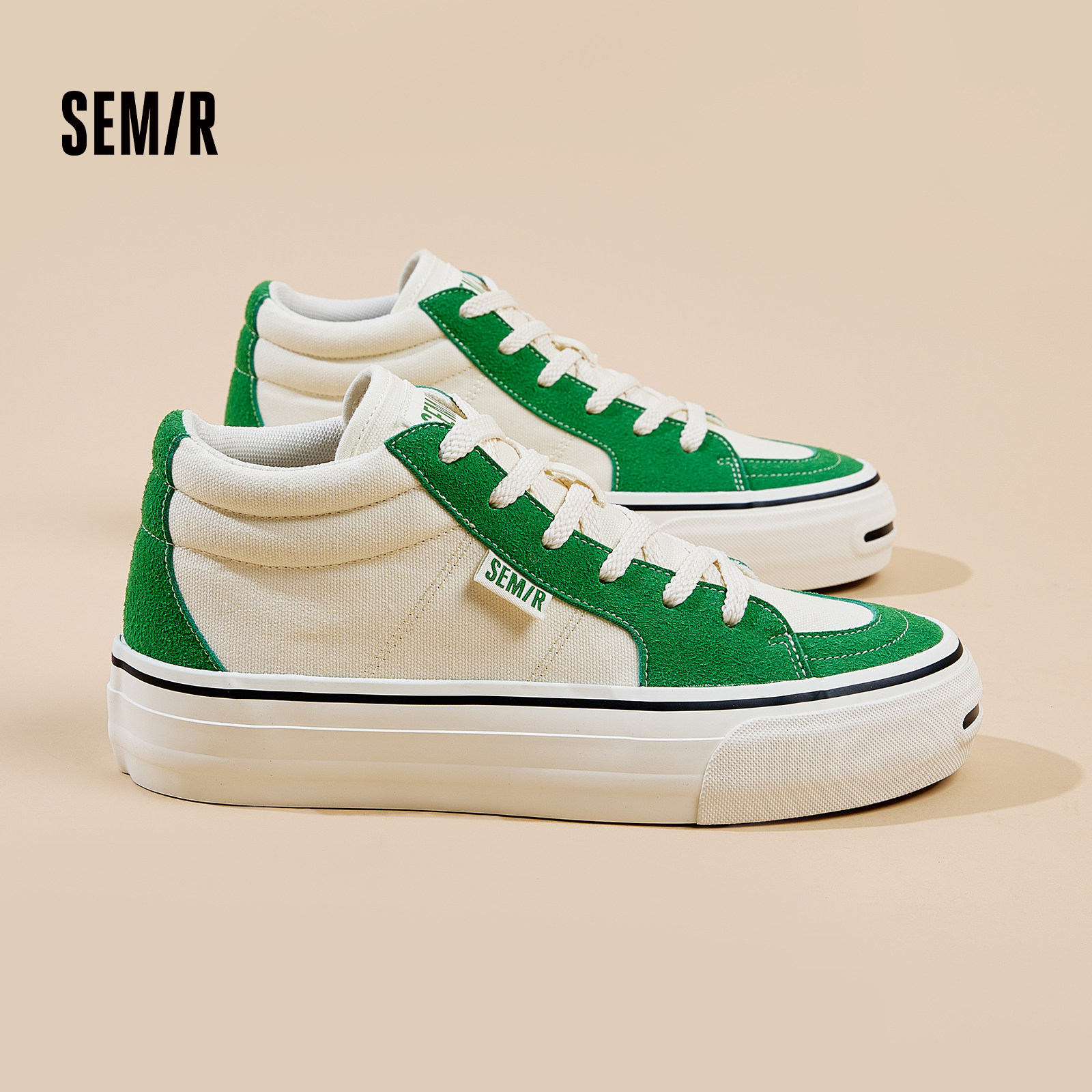 Semir高帮帆布鞋男2025新款秋冬黑色百搭休闲厚底增高开口笑板鞋