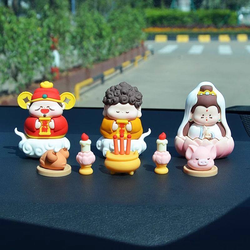 汽车摆件中控台财神观音公仔保平安娃娃解压可爱车载车内饰品创意