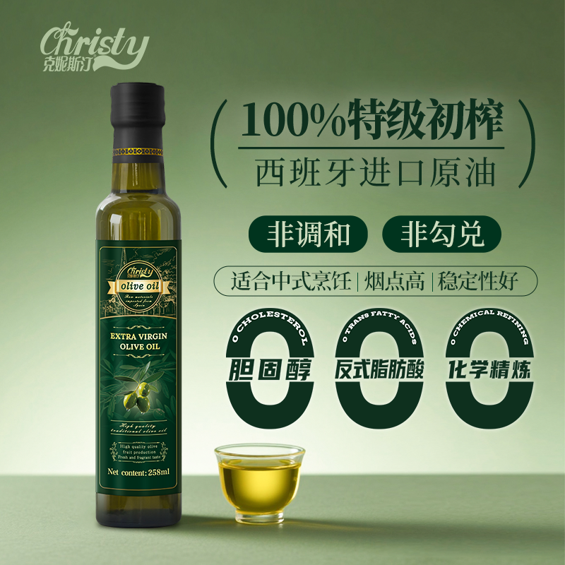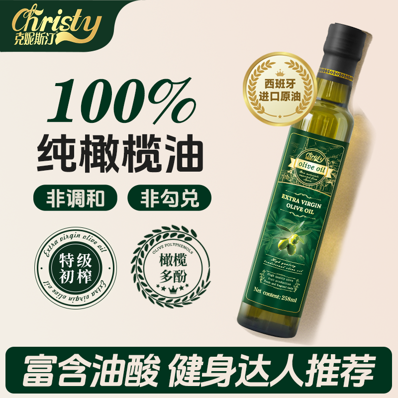 特级初榨橄榄油258ML原料100%纯正橄榄油凉拌油食用油精炼健身