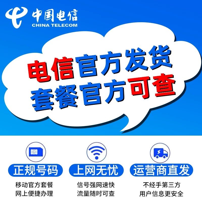 中国电信流量卡低月租手机卡上网卡全国通用大流量电话卡无线限量