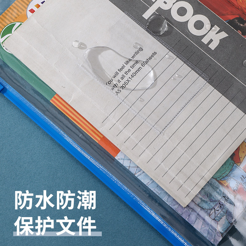 齐心透明a4文件袋防水高中生试卷加厚收纳袋塑料档案袋学生用按扣大容量票据作业产检纽扣资料袋办公用品