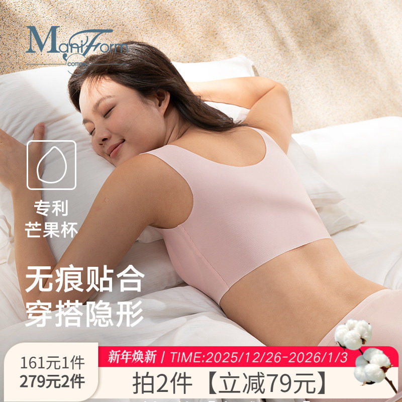曼妮芬棉质生活背心式文胸睡眠围一片式无痕无钢圈芒果杯舒适内衣
