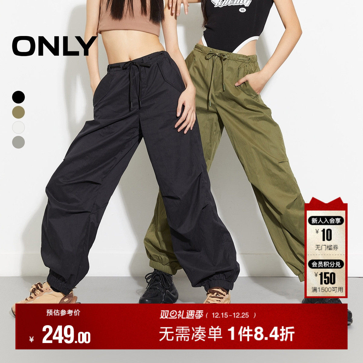【热销爆款】ONLY2025秋季新款休闲运动宽松直筒束脚降落伞休闲裤