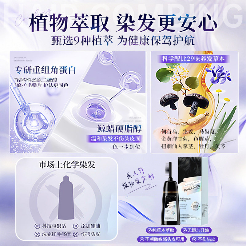 染发膏纯植物黑茶色男女专用泡泡染发剂正品官方旗舰店染头发黑色