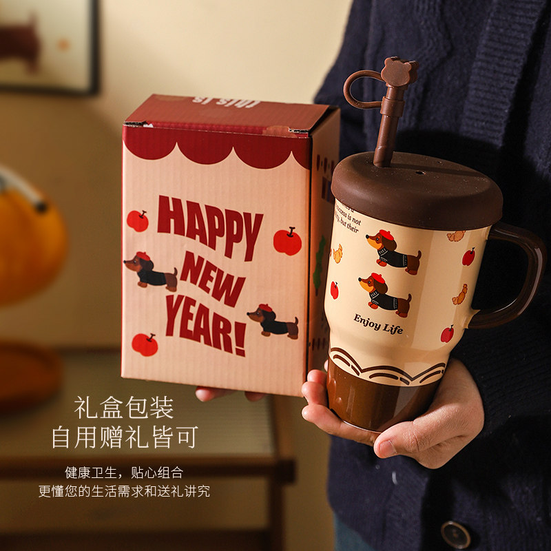 言仓线条小狗马克杯陶瓷水杯实用儿童女生情侣新年生日礼物