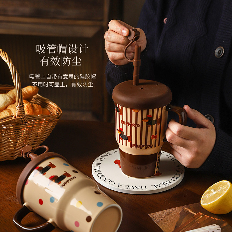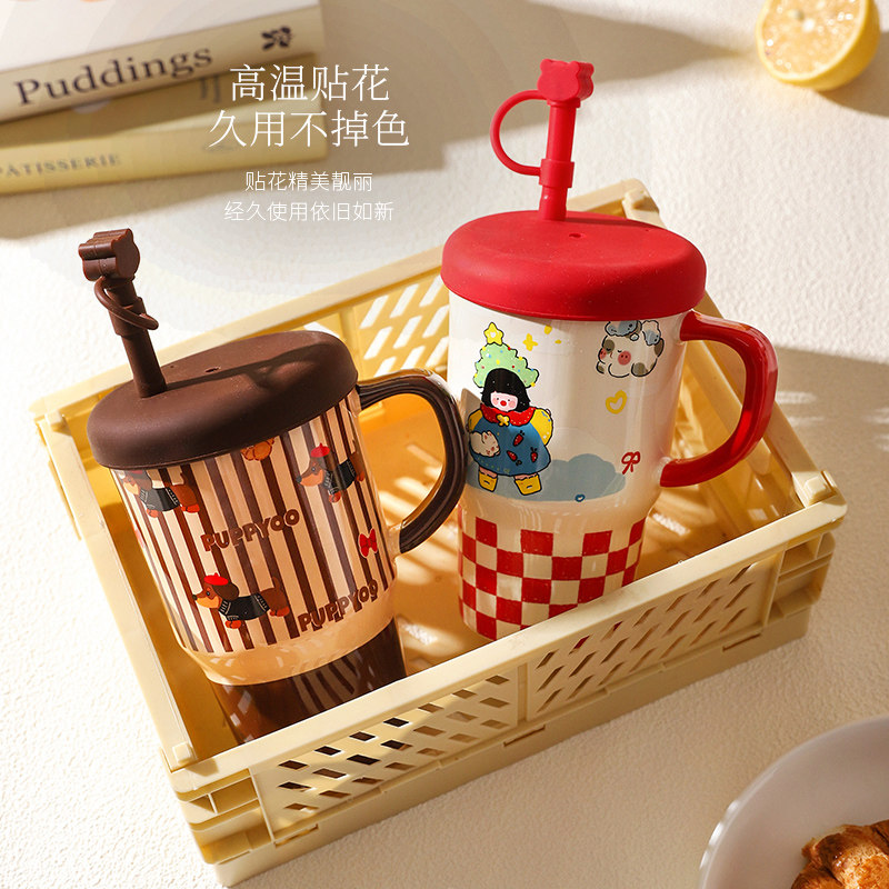 舍里带盖吸管马克杯家用陶瓷水杯咖啡杯实用礼物随手杯办公室水杯