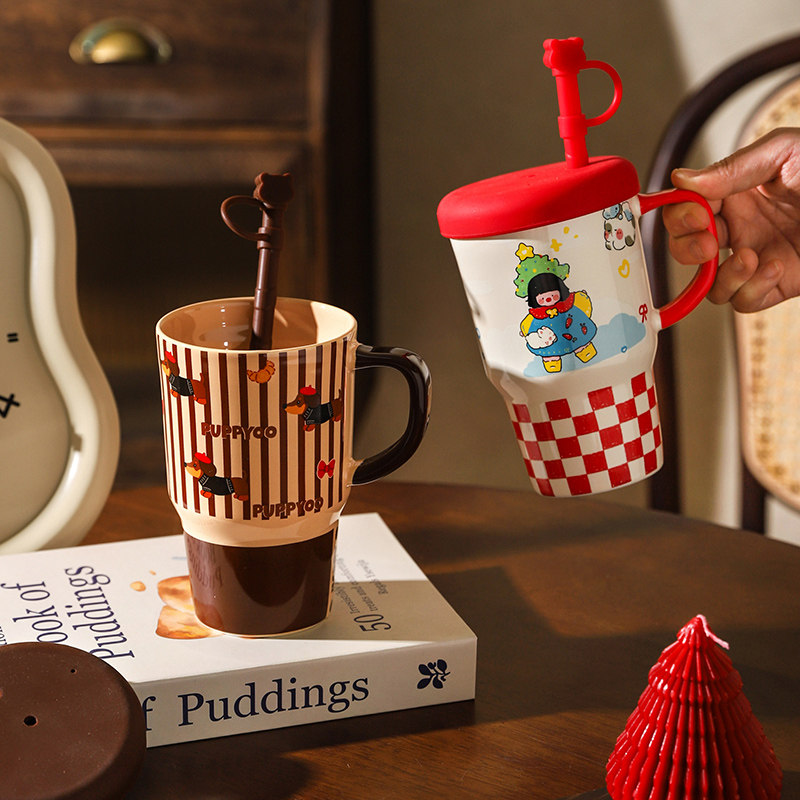 马克杯小狗陶瓷杯子带盖勺家用情侣早餐杯咖啡杯生日礼物礼盒装