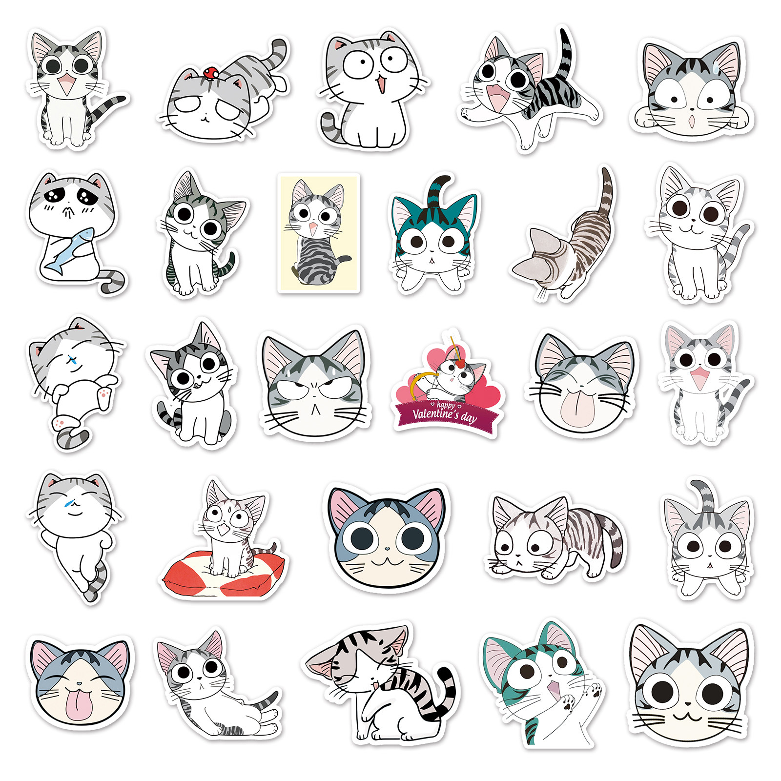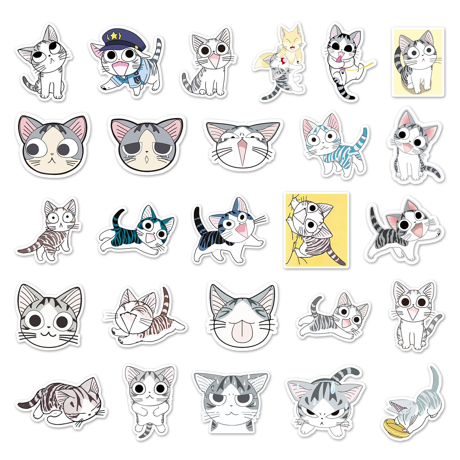 106张甜甜私房猫贴纸自行车笔记本电脑手机旅行箱汽车手账装饰卡通日漫起司猫可爱治愈涂鸦防水个性创意贴画