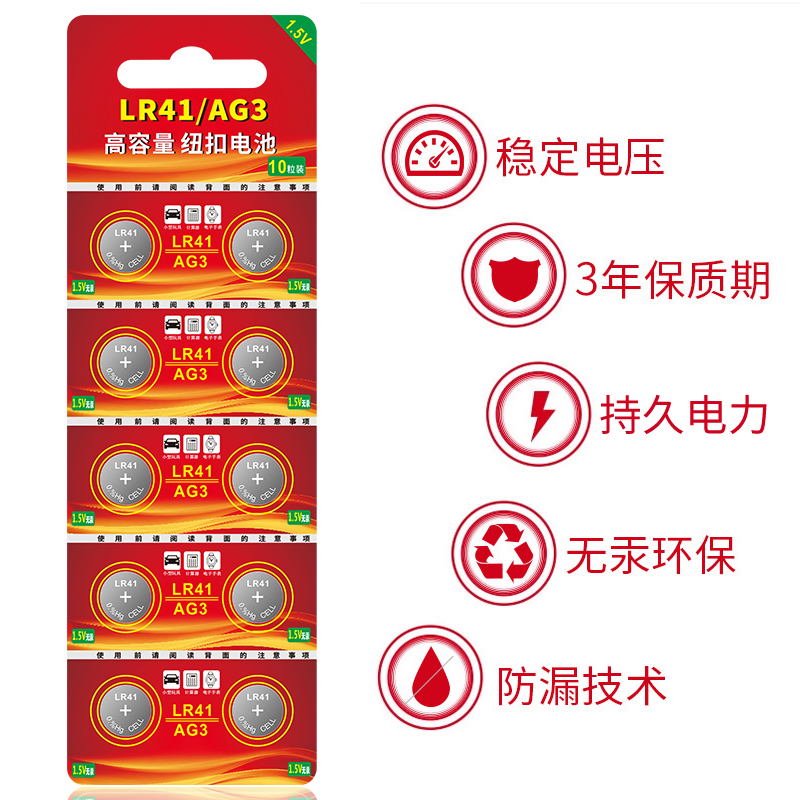 LR41AG3 192 392A L736适用于体温计纽扣电池发光耳勺电子手表玩具遥控器游标卡尺357a钮扣式1.5V碱性小电池