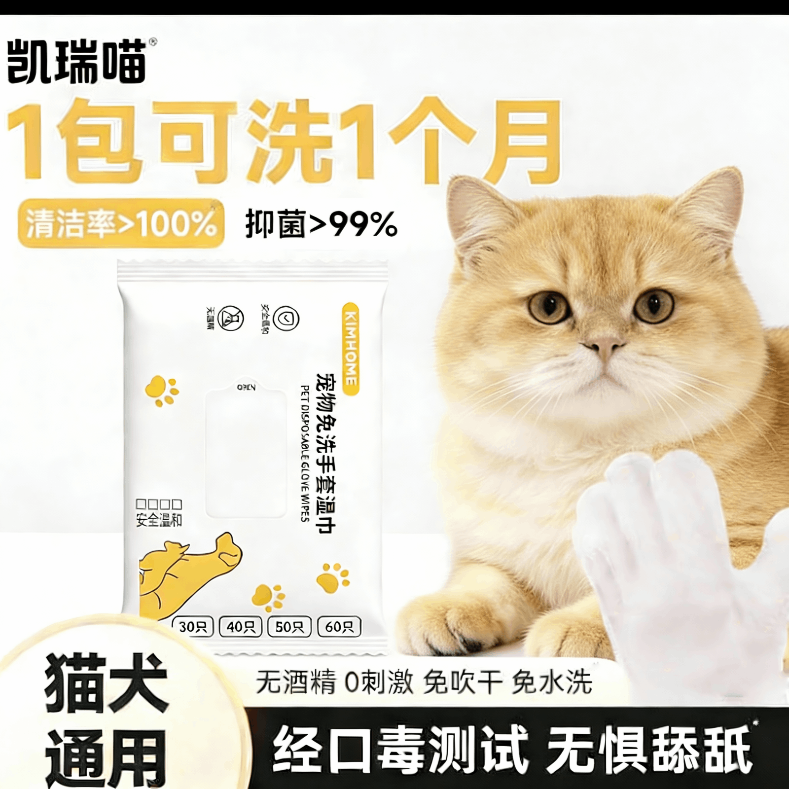 宠物免洗手套猫咪狗狗湿巾专用免洗澡干洗神器除臭湿纸巾清洁手套