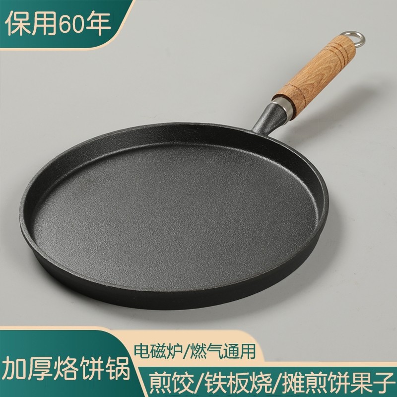 加厚铸铁平底锅家用无涂层烙饼锅手抓饼不粘煎锅摊煎饼果子