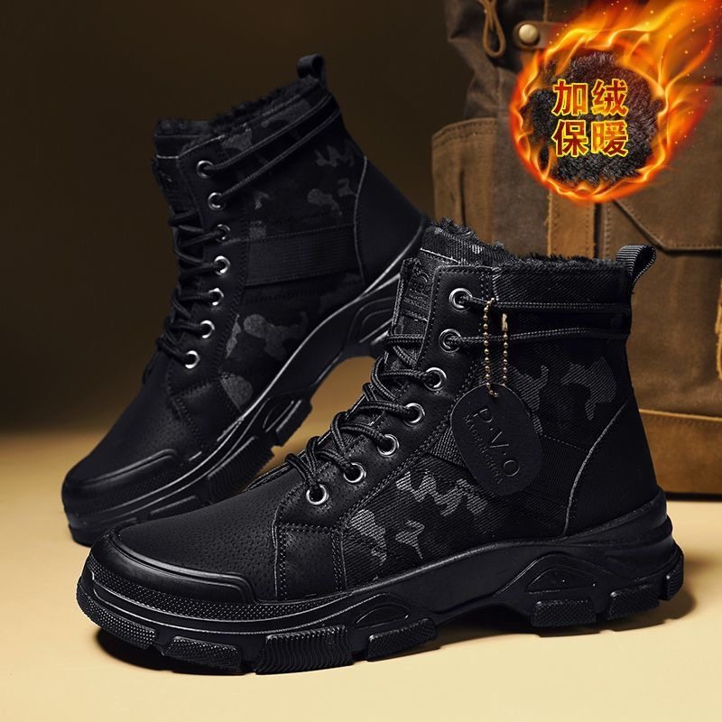 马丁靴男高帮帆布男鞋工装鞋男士靴子2025冬季新款劳保鞋加棉加绒