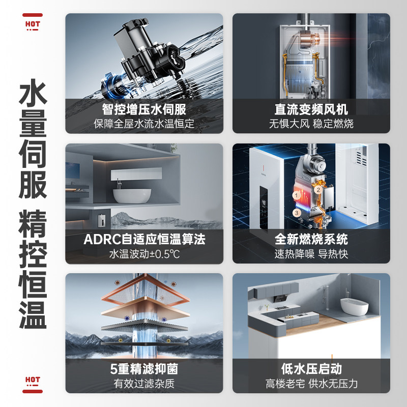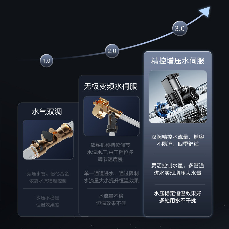 增压水伺服+恒温变频+低水压启动+5重精滤