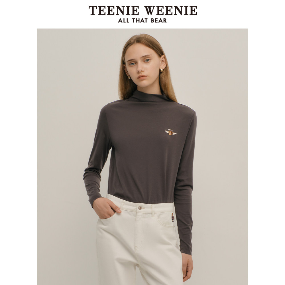 TeenieWeenie小熊奥莱女装时髦秋季莱卡T恤白色上衣轻奢功能内搭