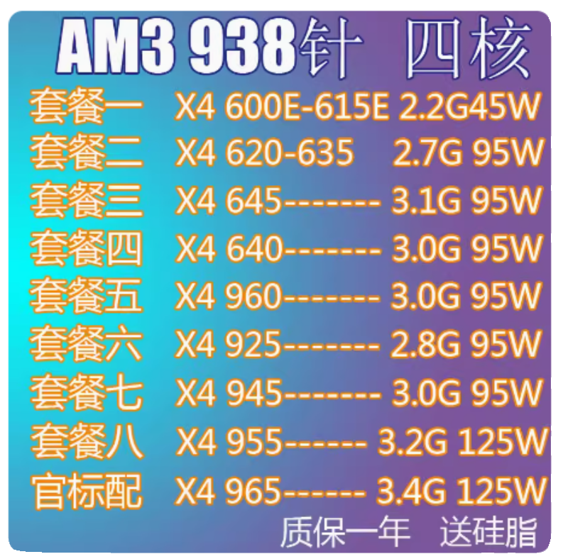 AMD速龙IIX4 610EX640X645 FX 8300 8320 1055T八核推土机AM3+CPU