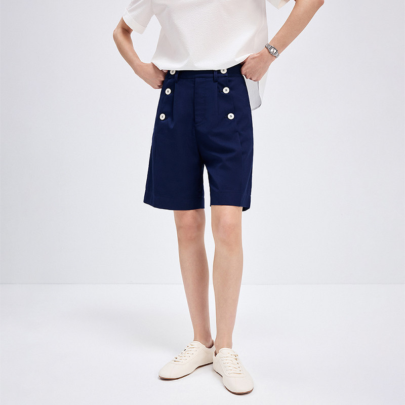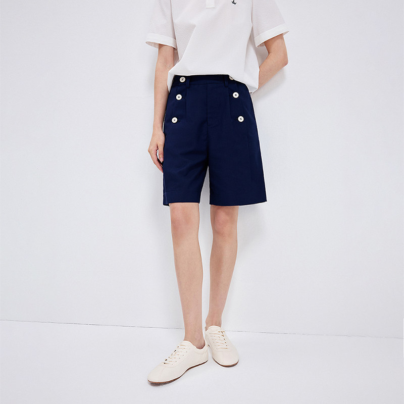 Navigare意大利小帆船夏季A字休闲中裤女士新款裤子设计感五分裤