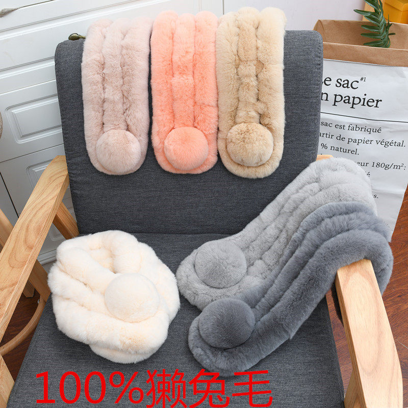新品真獭兔毛围巾女韩版时尚纯色百搭保暖皮草围脖加厚毛毛领脖套