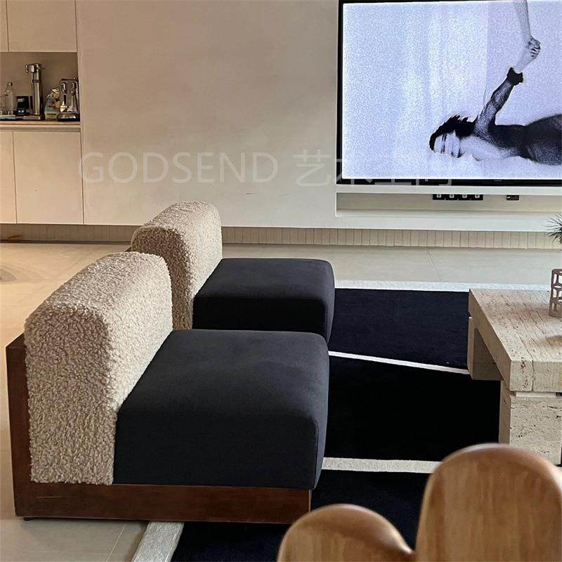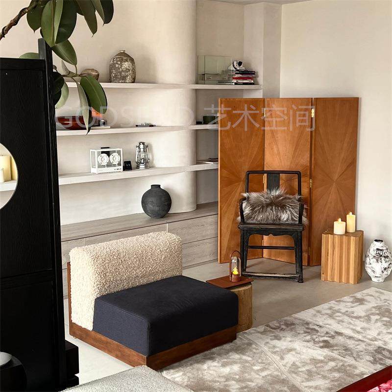 中古单人拼色沙发复古棉麻布艺实木公寓民宿创意不撞款客厅沙发椅
