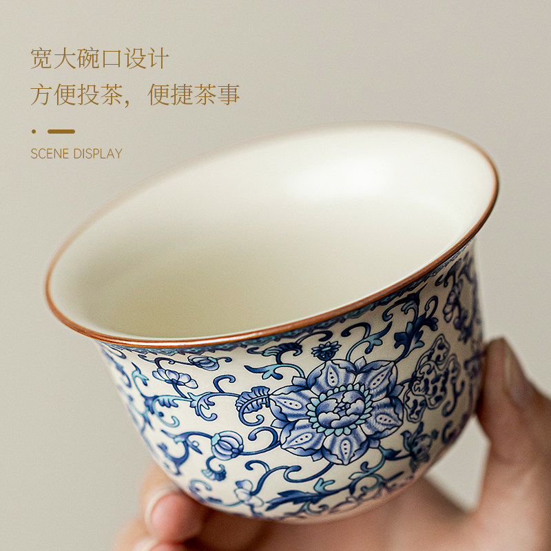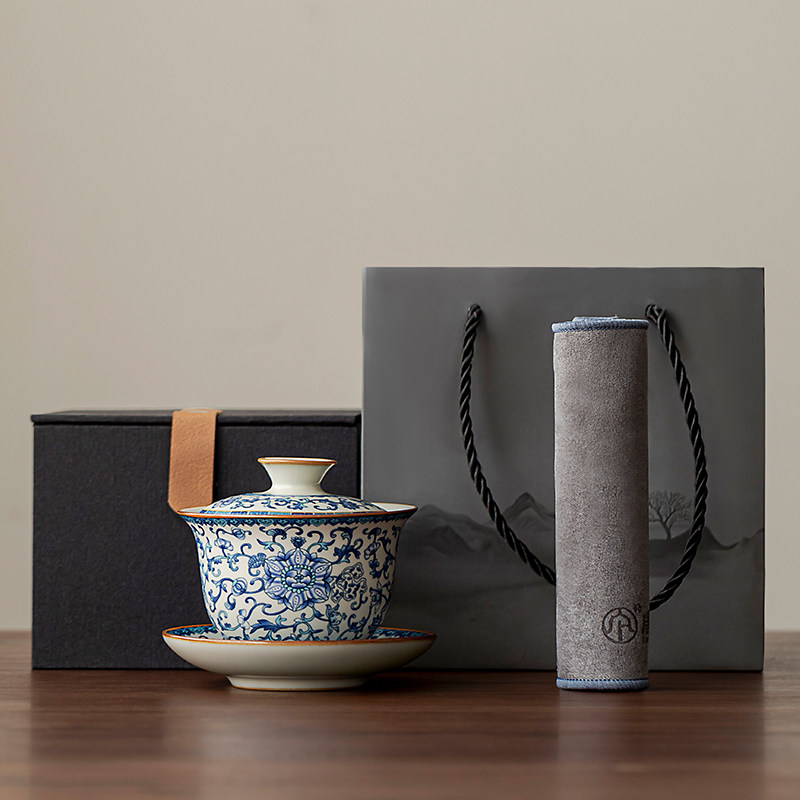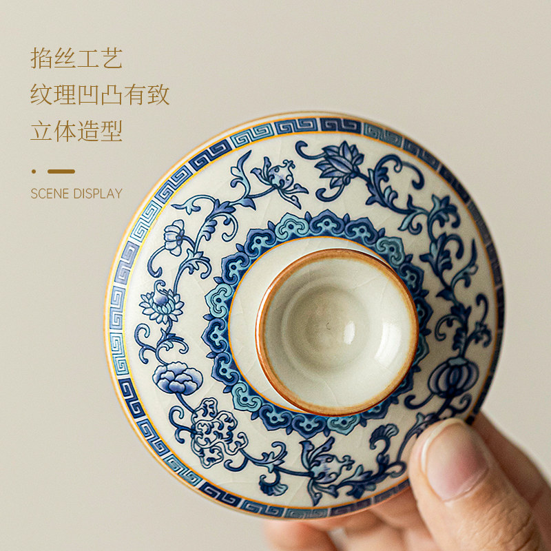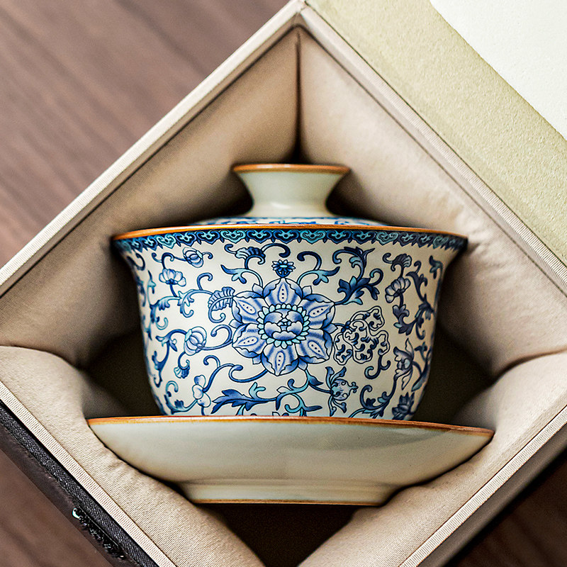唐丰青花汝窑三才盖碗茶杯单个高档功夫茶具泡茶碗三件套2026新款
