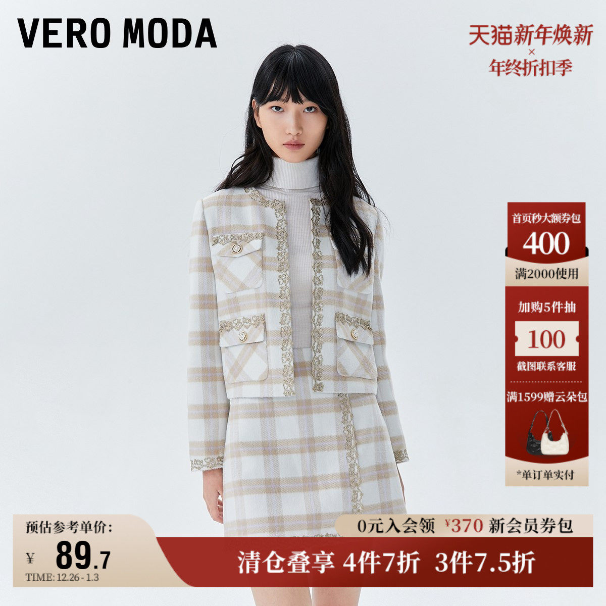 Vero Moda奥莱半身短裙秋季清仓优雅小香风甜美气质格纹高腰女