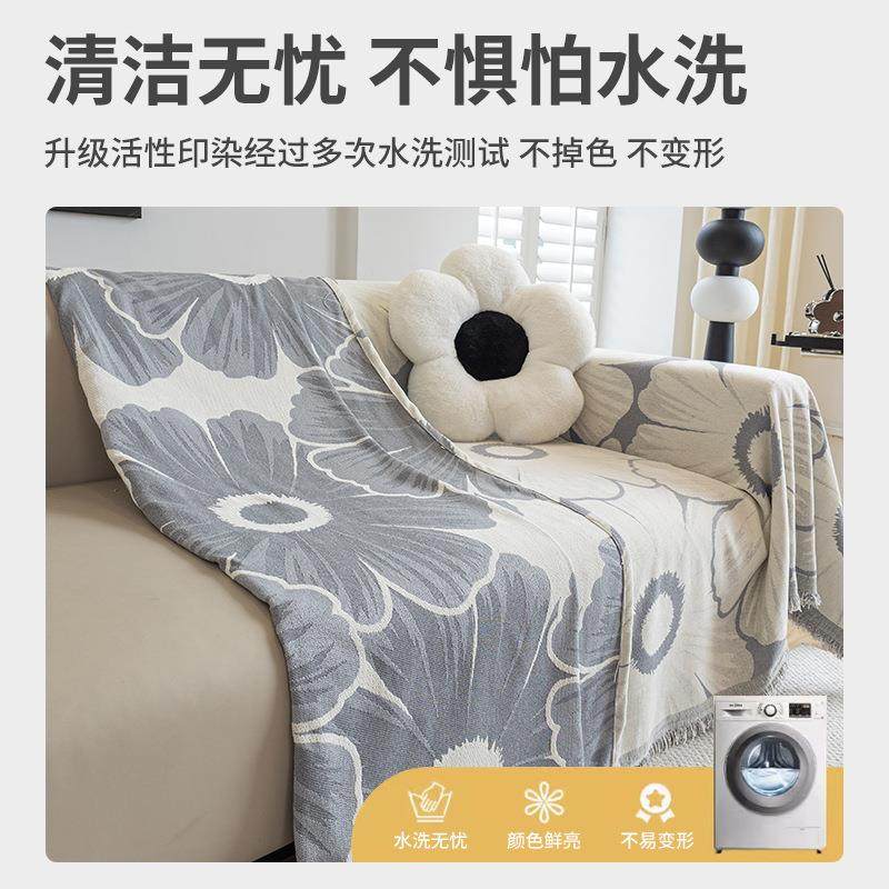 新款四季通用沙发巾雏菊客厅装饰雪尼尔流苏沙发盖布防猫抓沙发罩