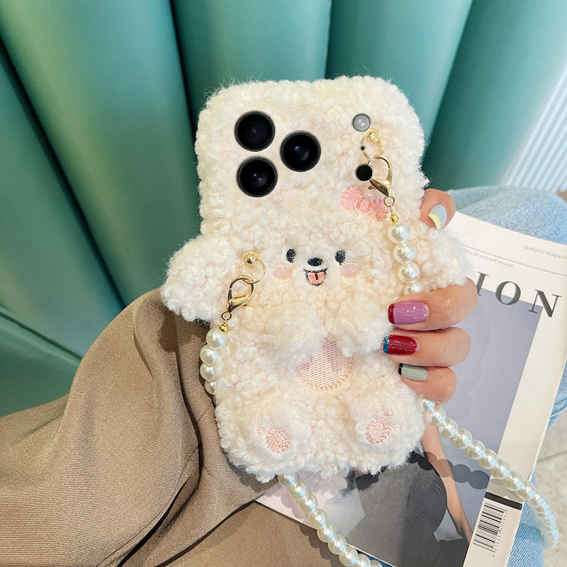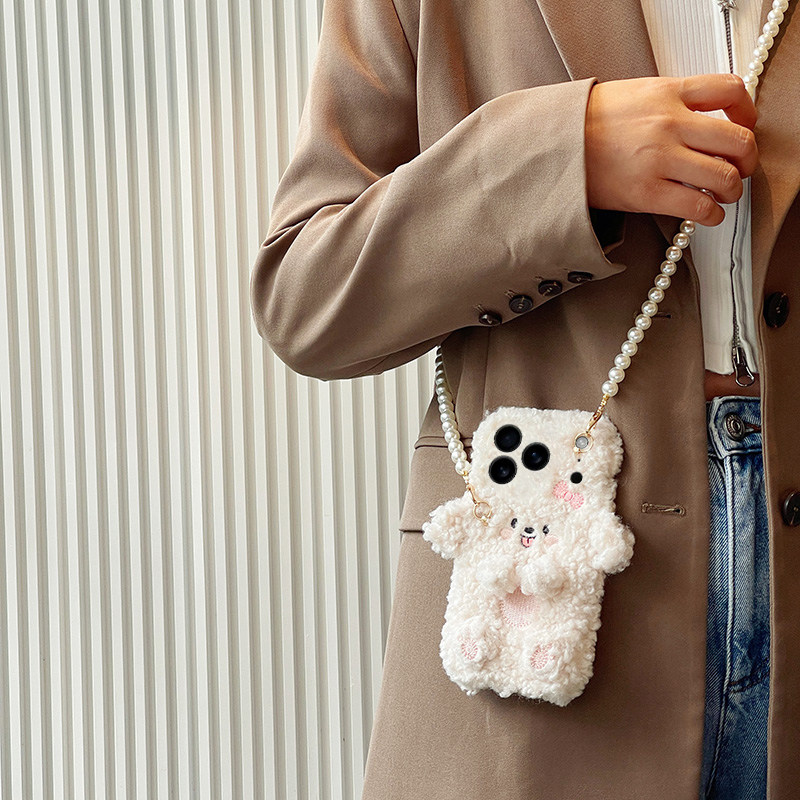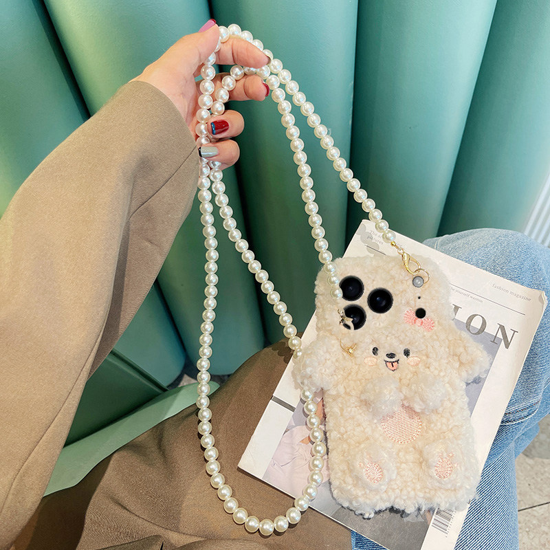 吐舌小狗适用苹果17air手机壳iphone16promax珍珠15plus斜挎14可背带13mini迷你12毛绒11秋冬季xr8/7xsmax6软