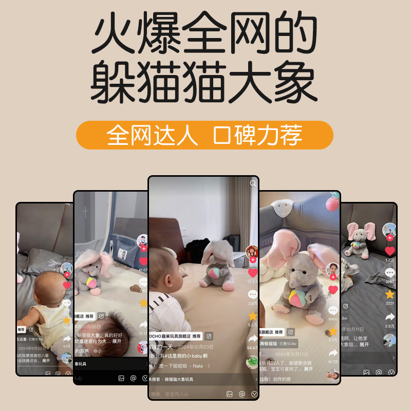 趣巢小吉象躲猫猫大象婴儿0-6月抬头练习哄娃神器毛绒安抚玩具