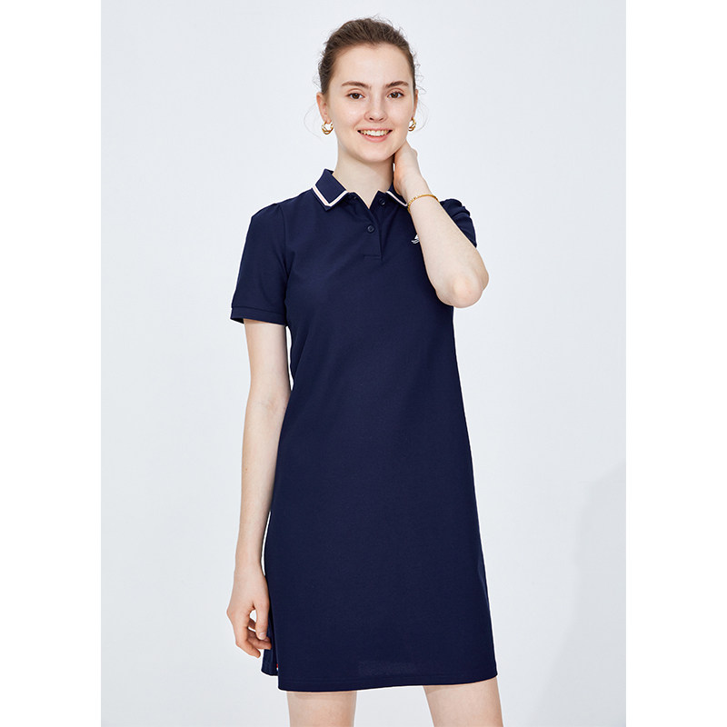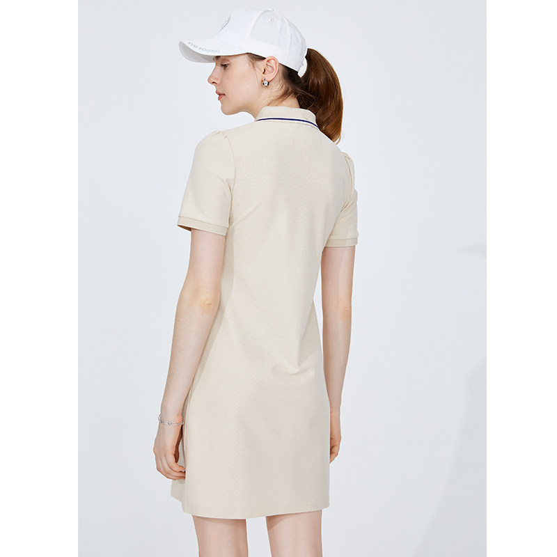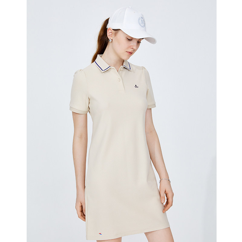 Navigare意大利小帆船夏季卡其色连衣裙休闲通勤polo裙显瘦A字裙