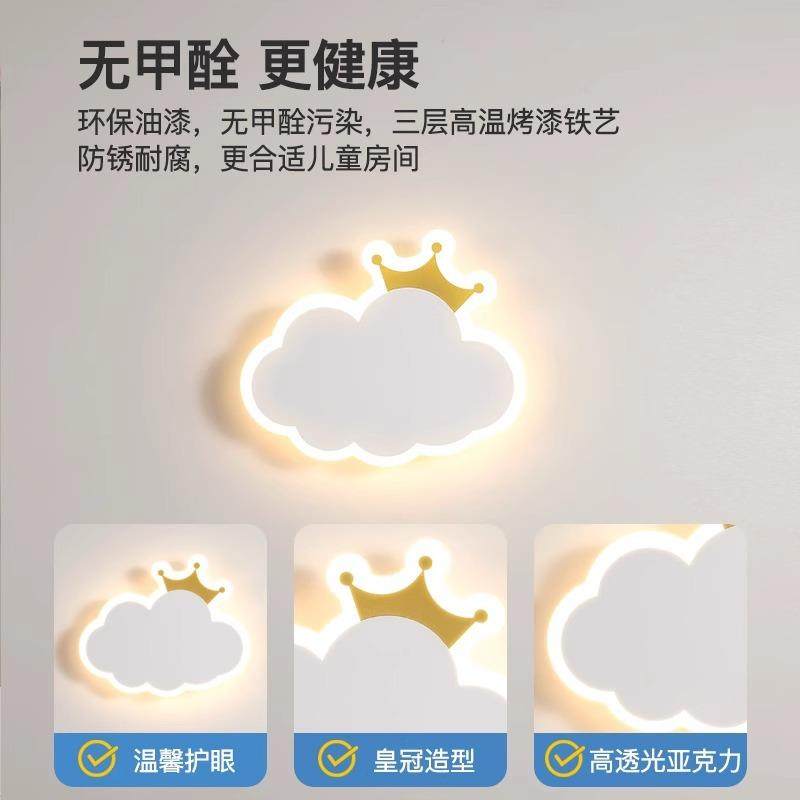 壁灯卧室床头客厅灯现代简约创意云朵主灯过道免接线儿童房墙壁灯