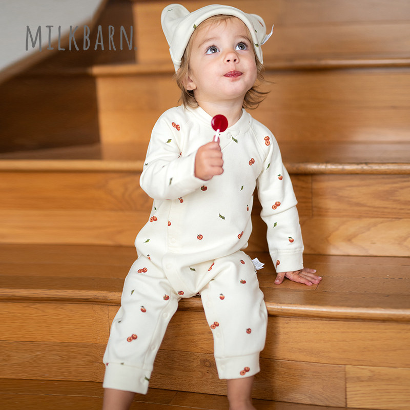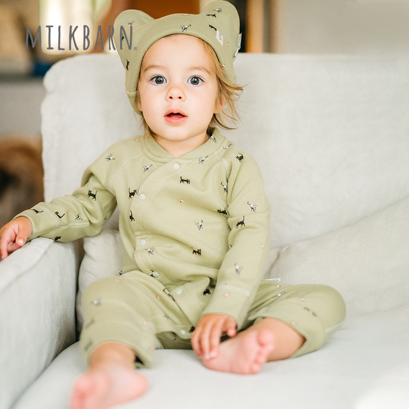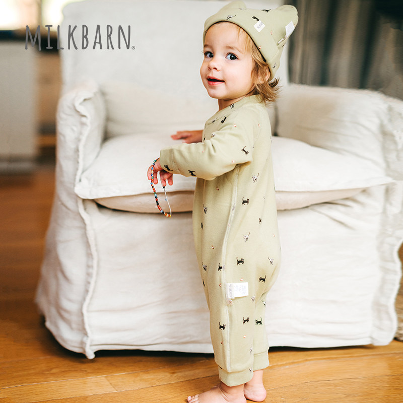 Milkbarn秋季新品婴幼儿连体衣长袖宝宝斜襟哈衣爬服秋冬保暖