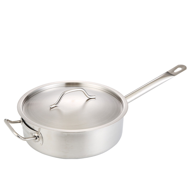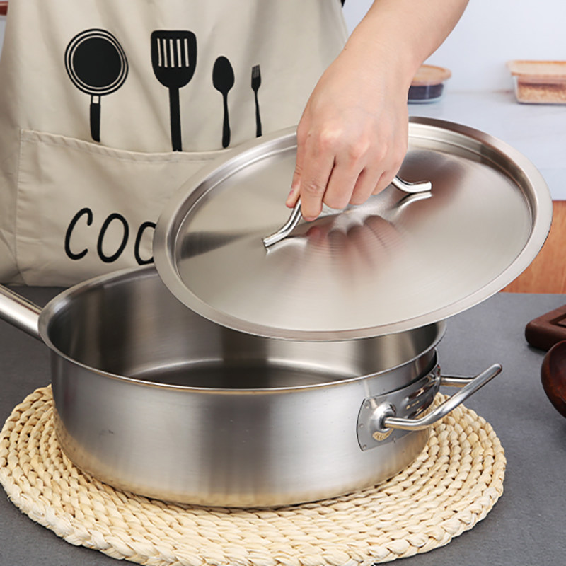 不锈钢加厚复合底单柄锅料理西式酱汁锅商用烘焙平底浅身锅电磁炉