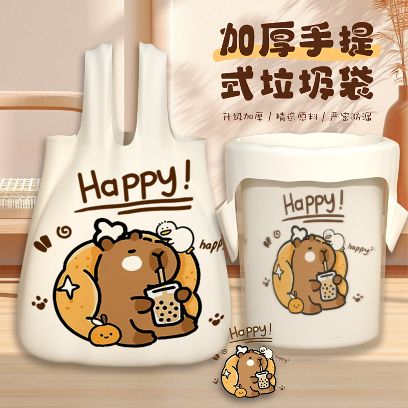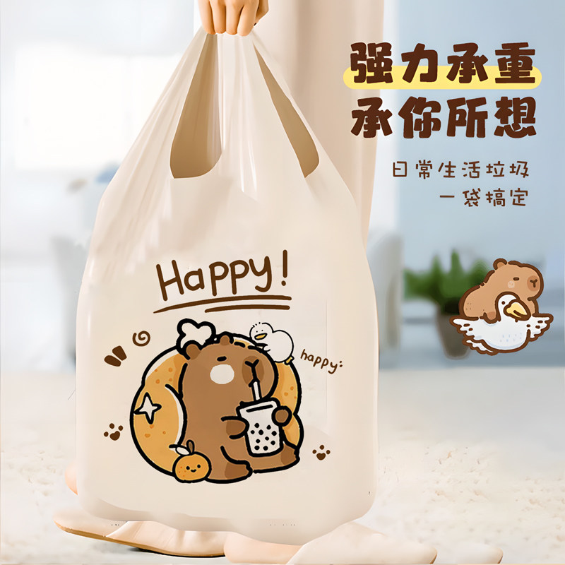 印花抽绳垃圾袋卡通兔子加厚萌趣自动收口拉绳手提袋垃圾桶塑料袋